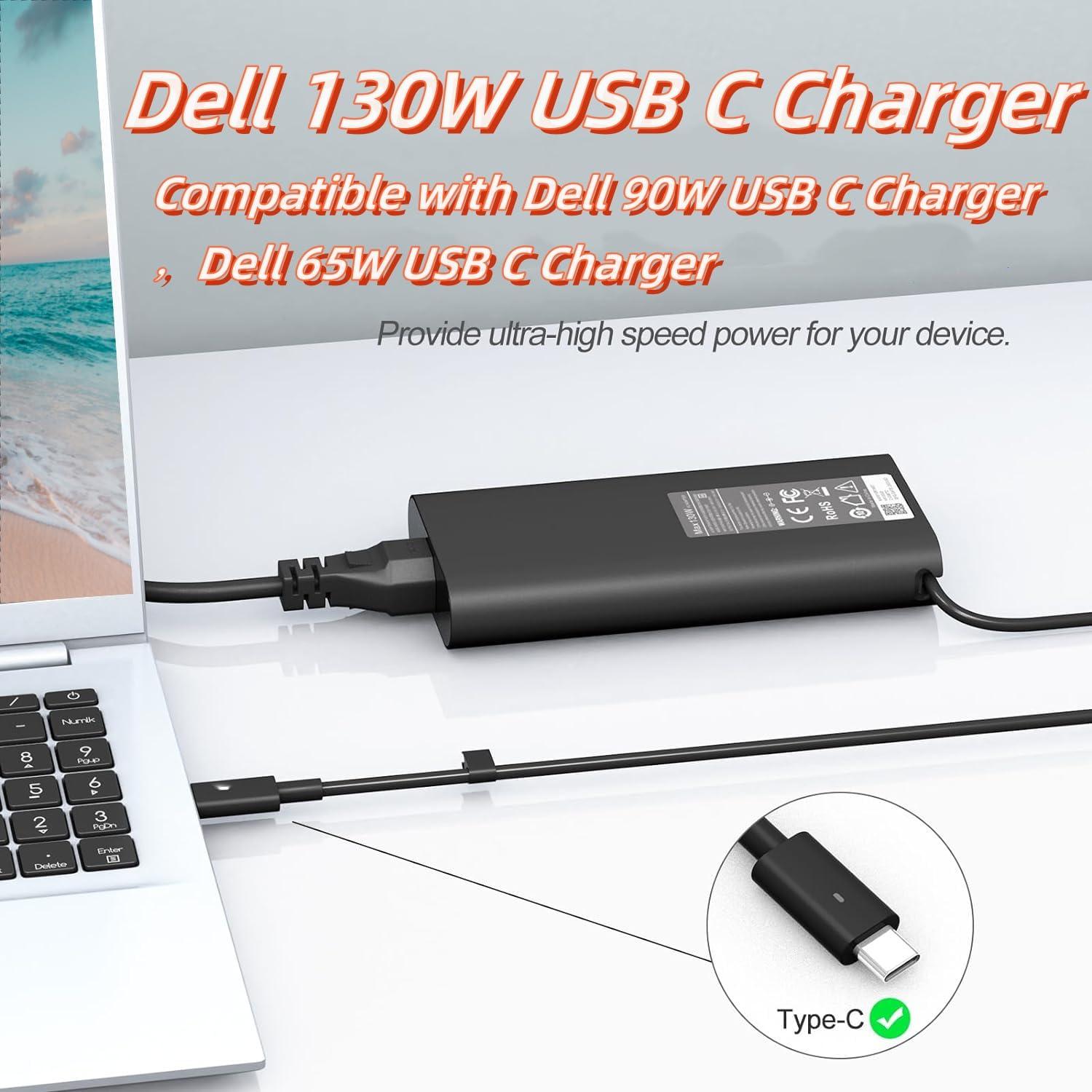 - Specifications: Input: 100-240V 50-60Hz Output: USB C 5V/9V/15V/20V 1A/6.5A Power: Dell Type C Laptop Charger 130W ( Compatible with Dell 90W USB C ChargerDell 65W USB C Charger) (Please confirm the specifications of your Dell power adapter before ordering.)