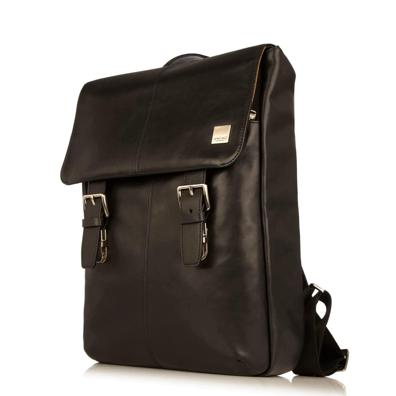 KNOMO Hudson Large Leather 16 inch Laptop Business Backpack for Work Computer Travel Bag Daypack Bag with Flap, Black
