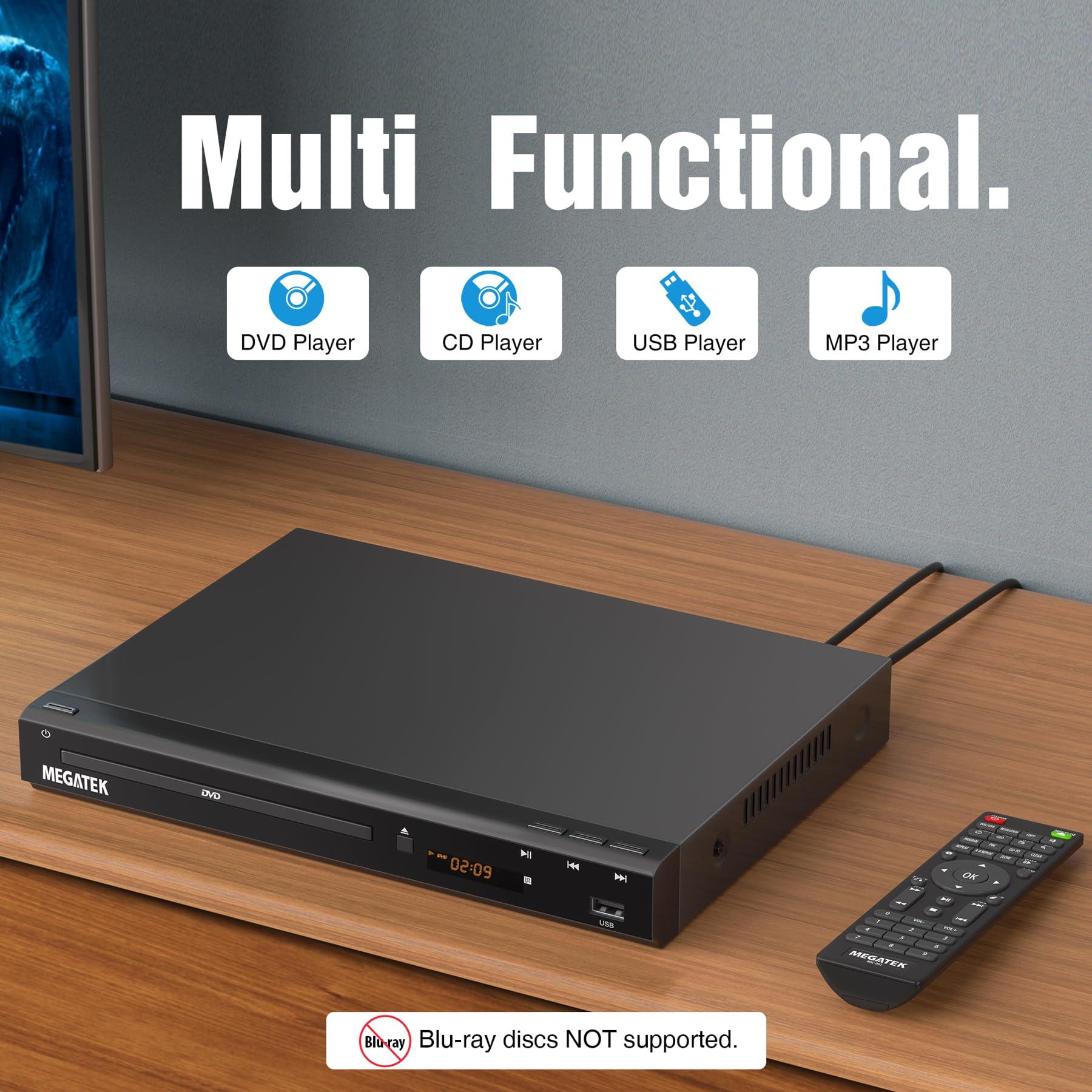 - MEGATEK QUALITY - Built with first-class components and material, the Megatek DVD Player features fast reading, error correction, and anti-shock for smooth playback. Its metal casing provides better cooling, noise reduction and reliability performance, compared with those with full-plastic casing.